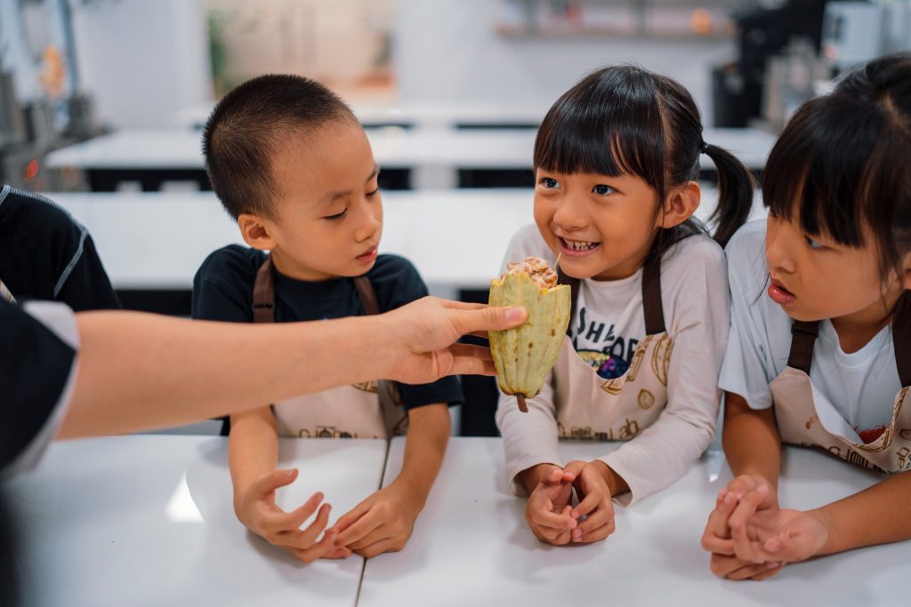 Beyond simple identification, students observe and explore the fermentation and drying processes of cacao beans, as well as the transformation of flavor at each stage. Tasting fresh and dried cacao beans helps students clearly recognize differences in flavor, allowing them to understand that every familiar chocolate bar is the result of nature, human labor, and a meticulous production process.