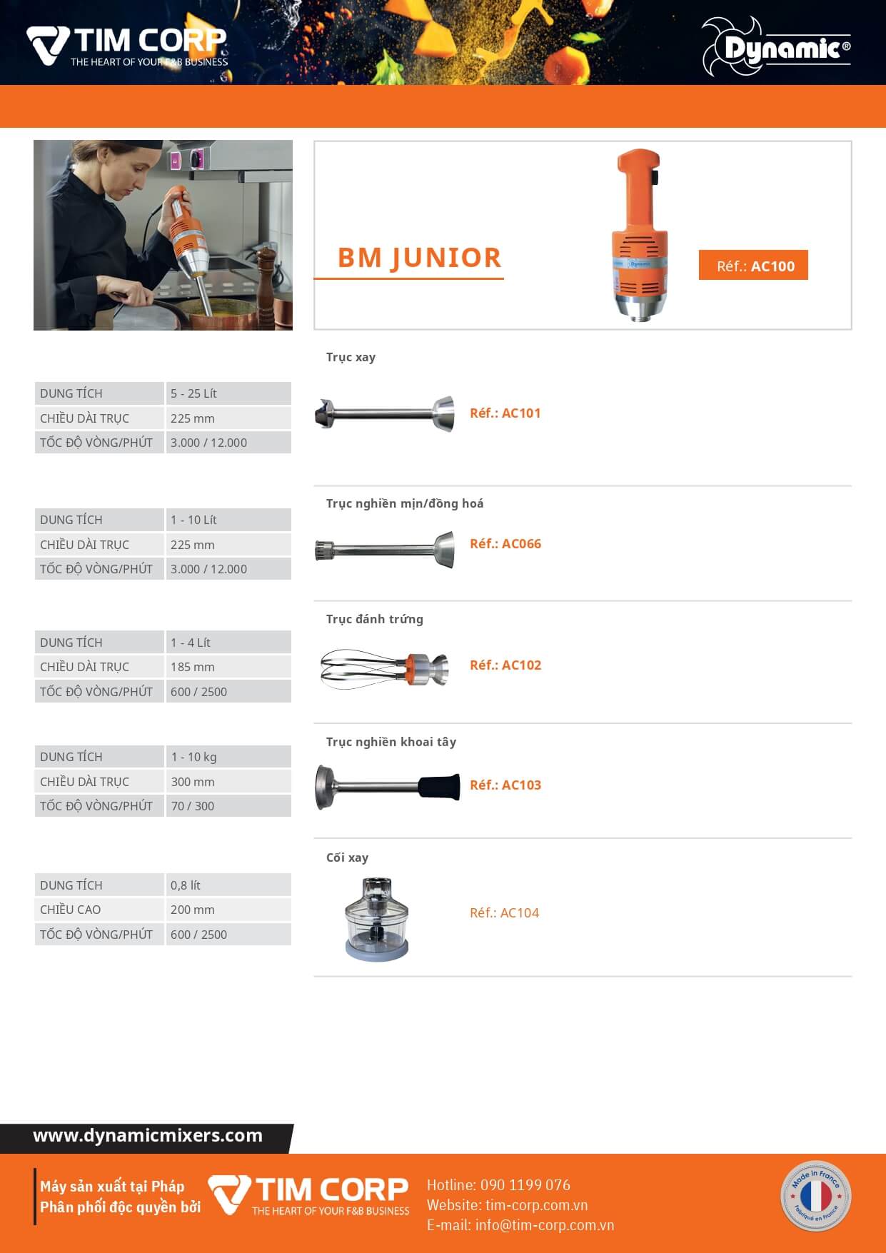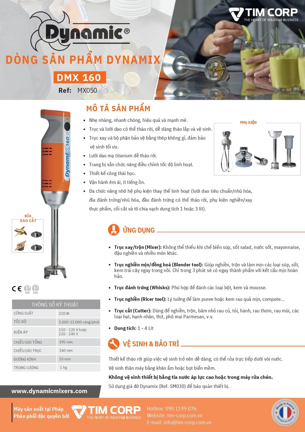 DYNAMIC DMX 160 là máy xay cầm tay chuyên nghiệp với thiết kế nhỏ gọn, lý tưởng cho chuẩn bị thực phẩm từ 1 đến 4 lít như súp, sốt, mayonnaise, purée, smoothie…