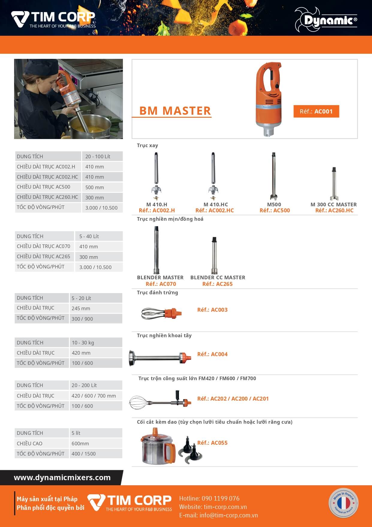 BM MASTER (mã AC001 / BM2000) là máy xay cầm tay công suất trung, lý tưởng cho khối lượng chế biến từ 5 đến 100 L.